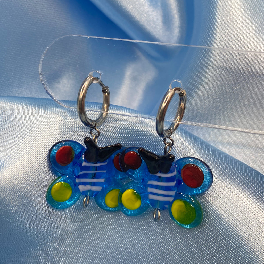 Flutter into fashion with our Glass Butterfly Hoops. These dazzling earrings feature delicate glass butterflies that dance and twirl with your every move.